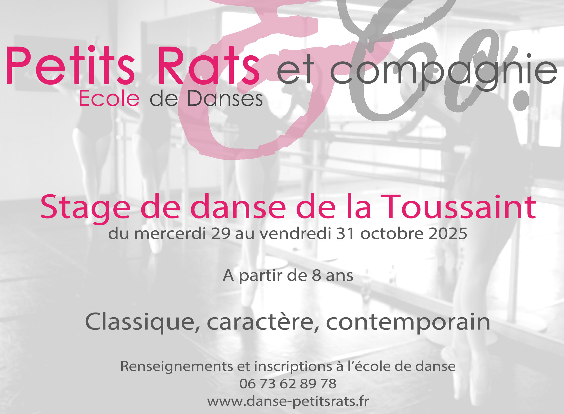 Petits Rats et Compagnie organise un stage de danse pendant les vacances de la Toussaint, du mercredi 29 au vendredi 31 octobre 2025.