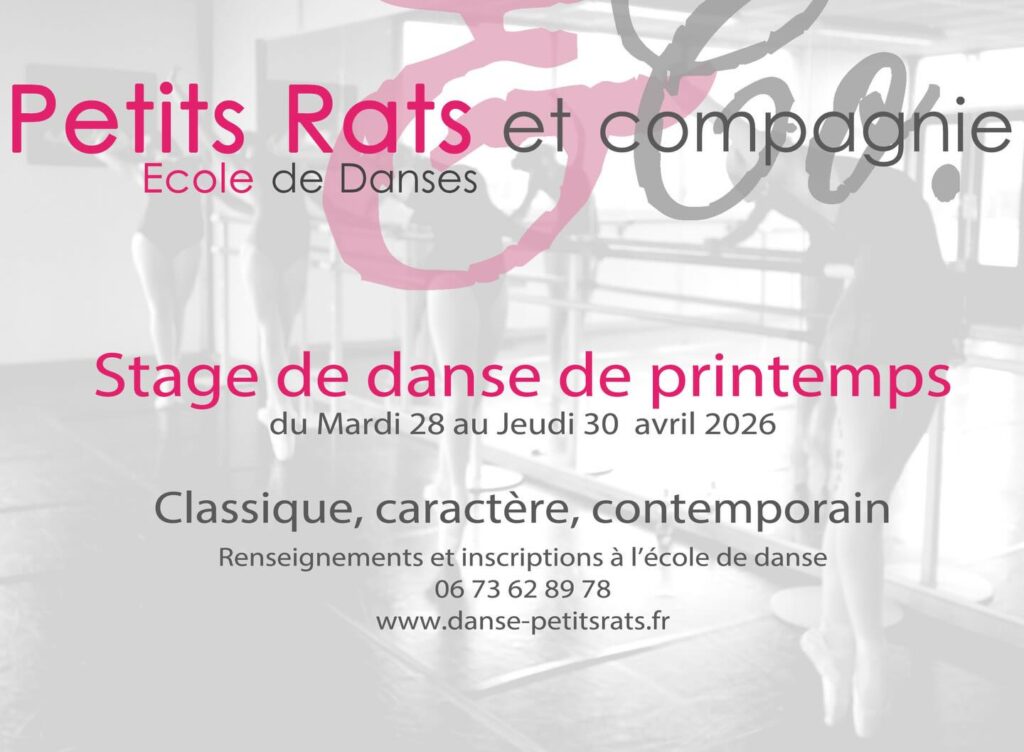 L’école de danse Petits Rats et compagnie organise un stage de danse de printemps du mardi 28 au jeudi 30 avril 2026. Trois jours dédiés à la pratique, à la progression et au plaisir de danser dans une ambiance conviviale et bienveillante.