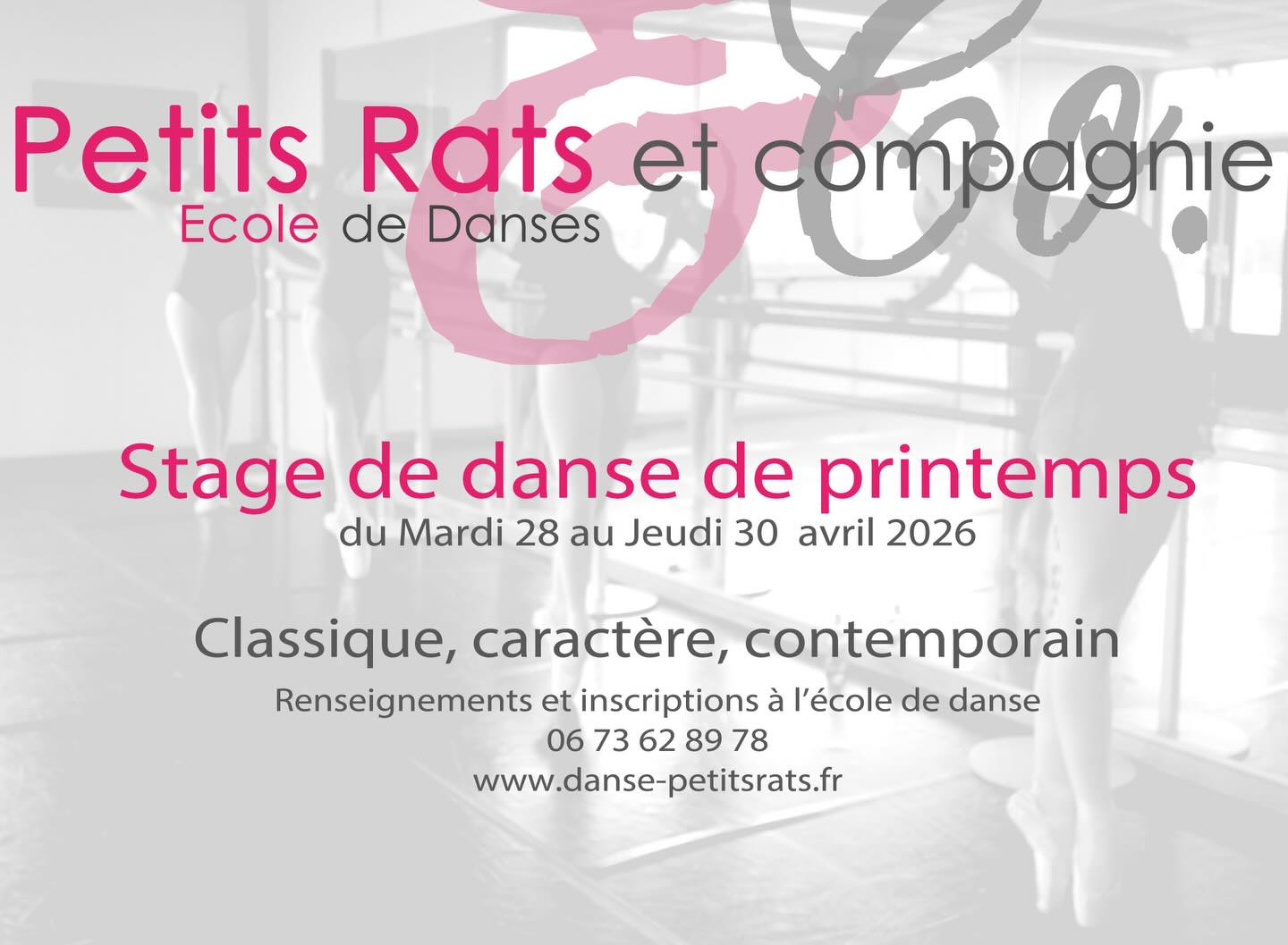 Participez au stage de danse de printemps du 28 au 30 avril 2026 avec Petits Rats et compagnie. Classique, contemporain et caractère. Inscrivez-vous dès maintenant !